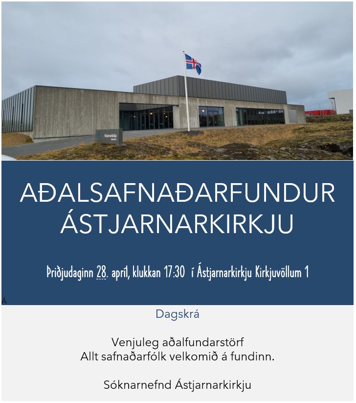 Arnór Blomsterberg2026-01-20T14:28:15+00:00Fundur Kvenfélags Ástjarnarkirkju, 21. janúarArnór Blomsterberg2026-01-20T14:28:15+00:0020. janúar, 2026|Slökkt á athugasemdum við Fundur Kvenfélags Ástjarnarkirkju, 21. janúar